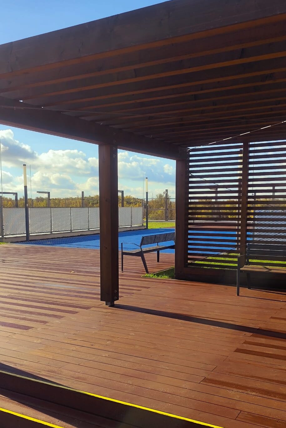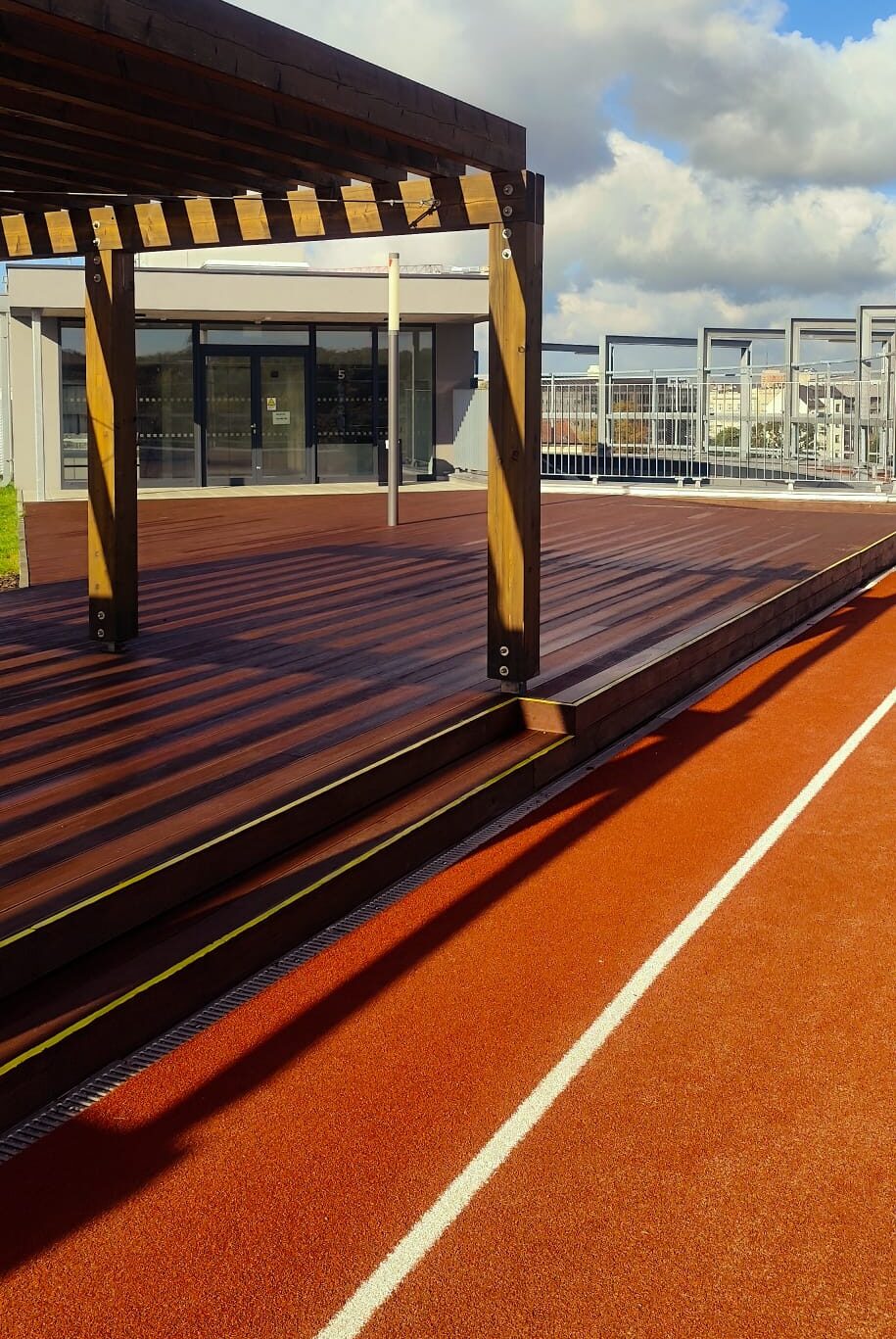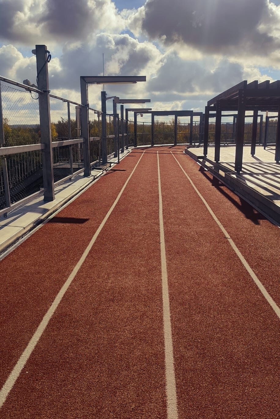 200 m dlouhý nekrytý osvětlený ovál bez klopených zatáček s betonovým povrchem se nachází na střeše budovy. Je možné jej využít pro inline bruslení, kolečkové lyže atd.